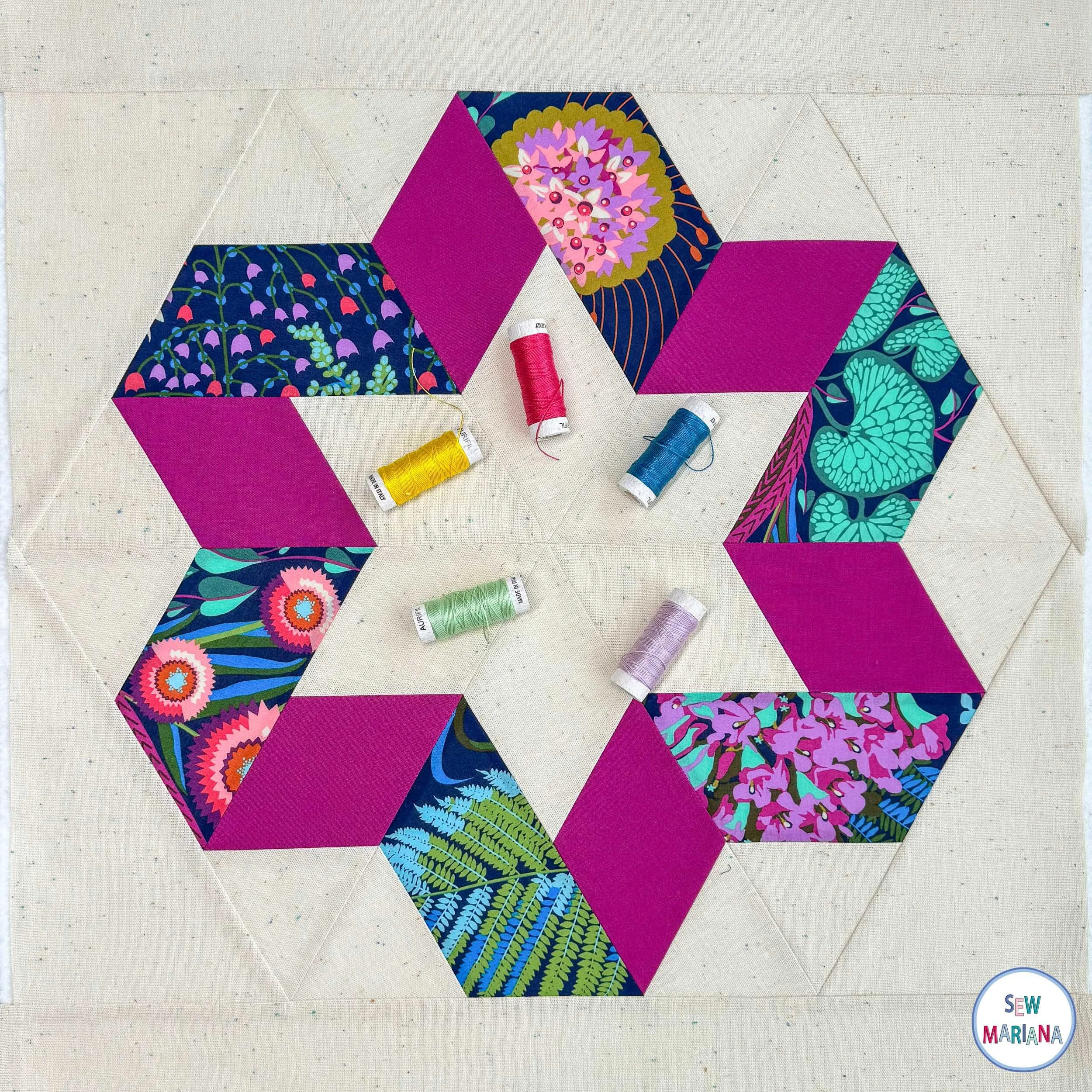 Once the block was pieced and pristine, it was really showtime! I pulled out my most recent Aurifil goodies: five gorgeous colors from second edition of their 8wt threads!
