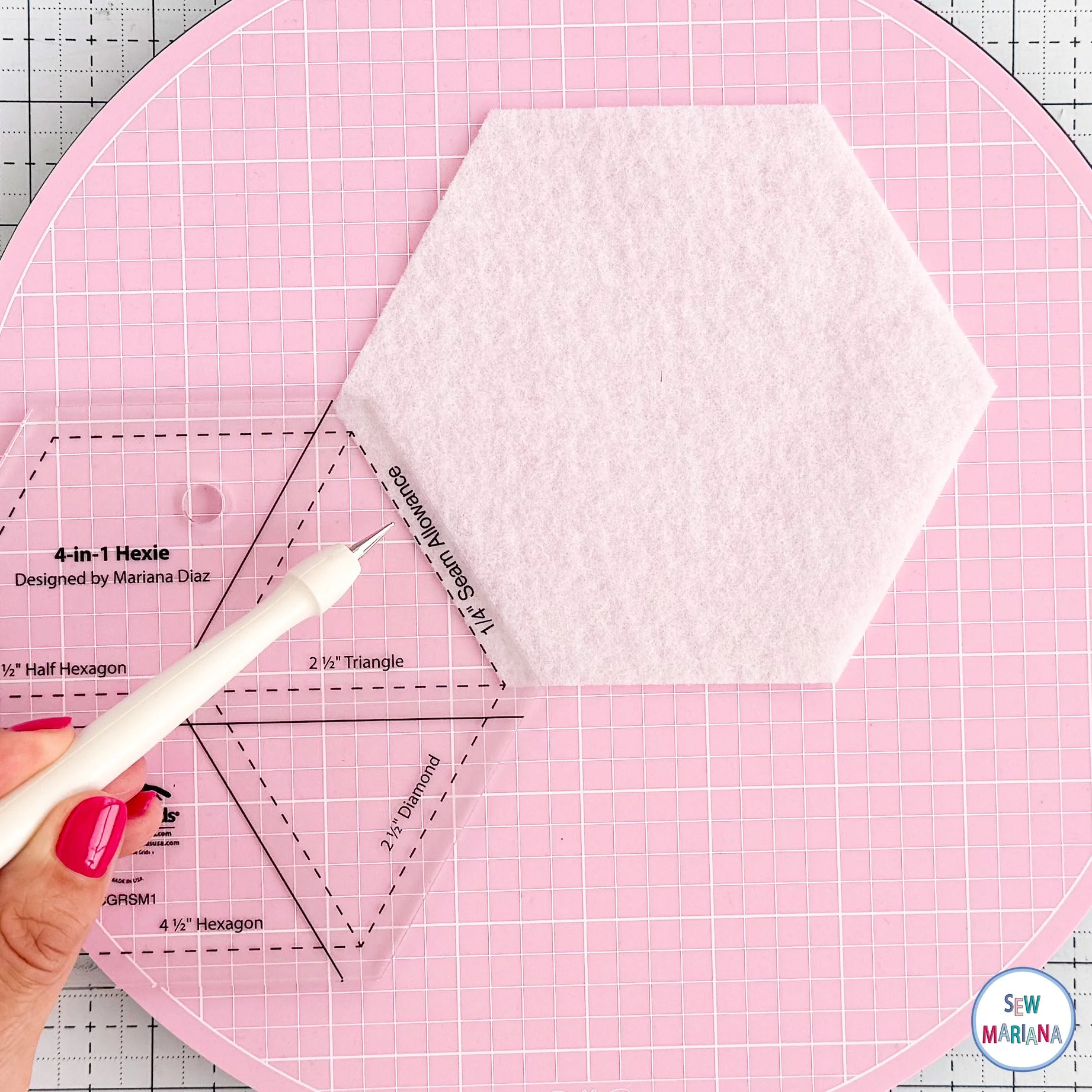 Since I wanted to really make it my own, I made a little heart block, my Foundation Paper Pieced “In My Heart”, as the centerpiece. I’ve been told that In My Heart, especially when I make it pink, is reminiscent of that essential pink ribbon. And pink is the theme for this campaign, so I went all-in!