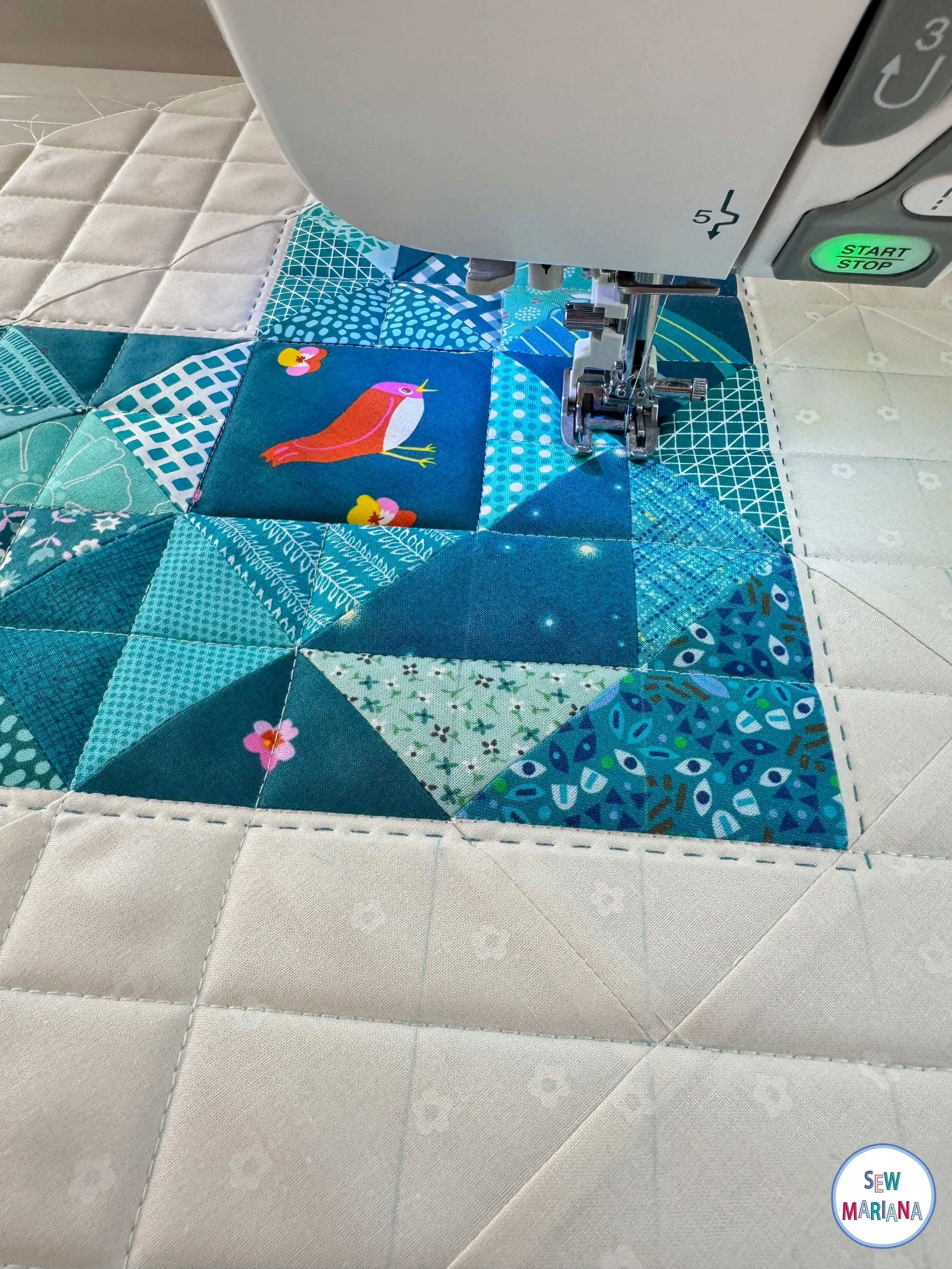 I even gave my new Sashiko machine a test run, (see the teal line of quilting) but more on that another time.
